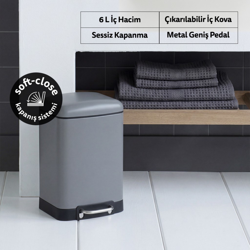 5five Ariane 6 L Metal Pedallı Çöp Kovası, kompakt boyutu ve dayanıklı yapısıyla banyo, ofis, lavabo altı veya küçük mutfak alanlarında hijyenik kullanım sunar. Metal gövdesi sağlam ve uzun ömürlü bir yapı sağlarken çıkarılabilir iç kova sayesinde temizlik ve poşet değişimi kolayca yapılabilir.