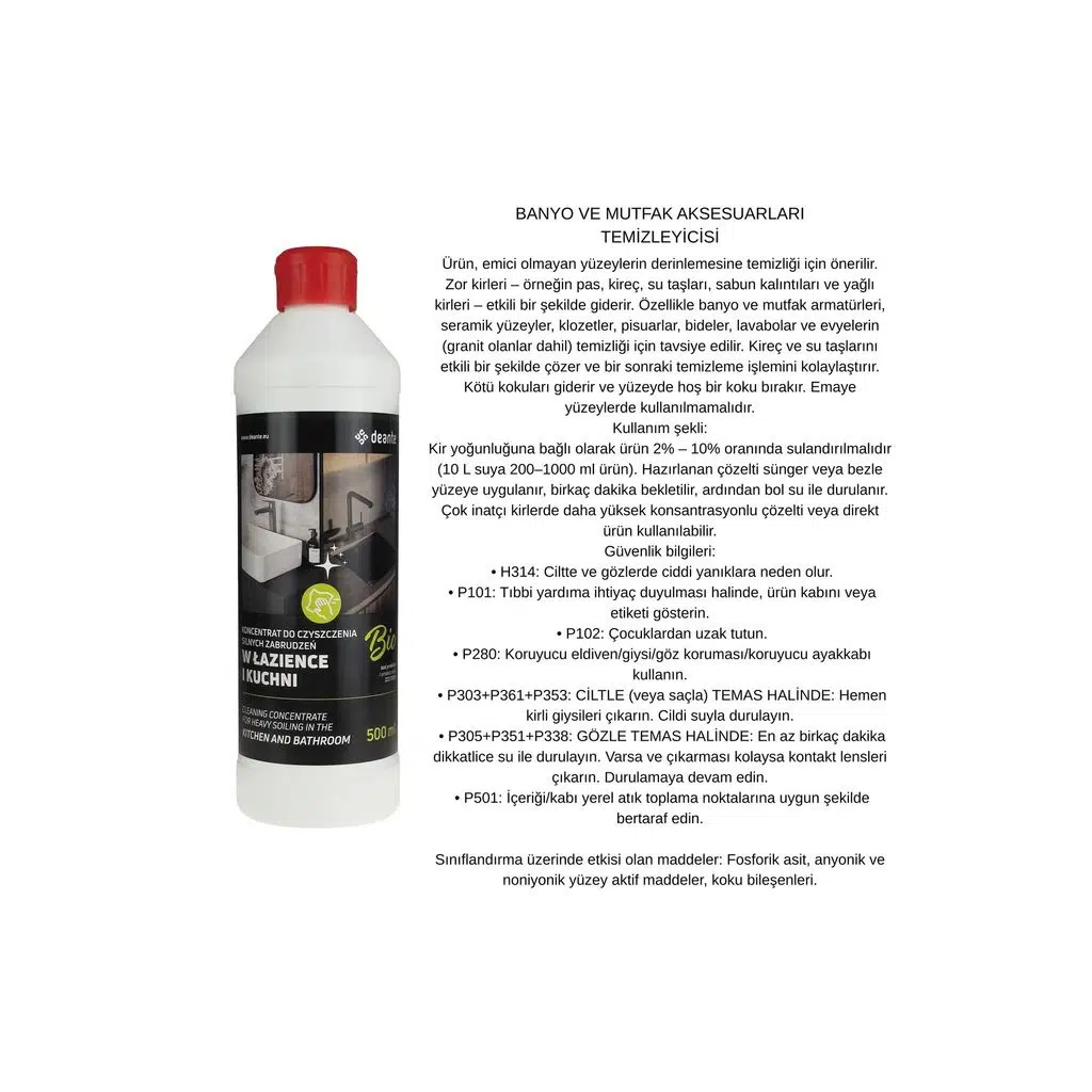 Banyo ve mutfak alanlarında zamanla oluşan ağır kirler; suya bağlı kireç tabakaları, sabun ve deterjan kalıntıları, yağ bazlı lekeler ve günlük kullanımın bıraktığı izlerle birlikte yüzeylerin hem hijyenini hem de estetik görünümünü olumsuz etkiler. Bu tür kirlerin temizliğinde sıradan ürünler yetersiz kalabilir. ZZZ_000B Ağır Kirler İçin Konsantre Temizlik Ürünü (500 ml), bu zorlu temizlik ihtiyaçları için özel olarak geliştirilmiş güçlü ve kontrollü bir çözümdür.