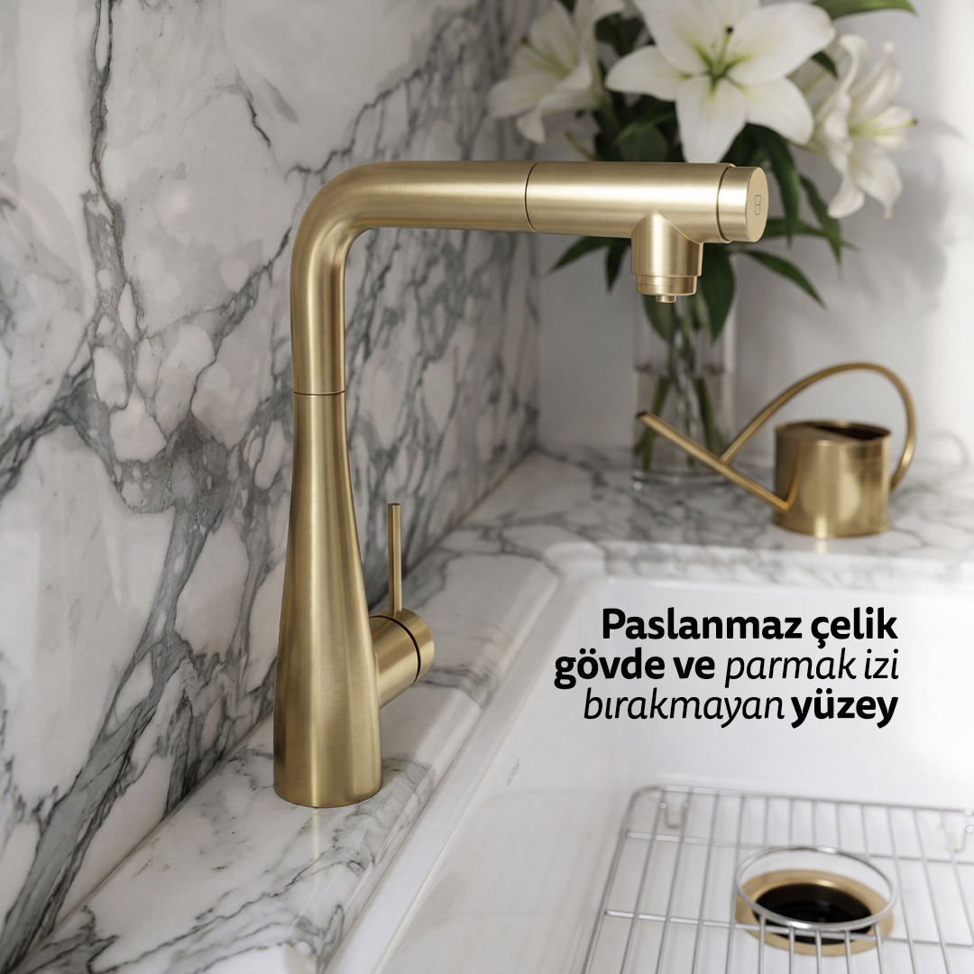 Spiralli ve çekilebilir uç, geniş evyelerde, büyük tencerelerde ve detaylı temizlik işlemlerinde maksimum kontrol sunar. Sebze ve meyve yıkama, derin kap doldurma ve lavabo temizliği daha rahat ve hızlı hale gelir.