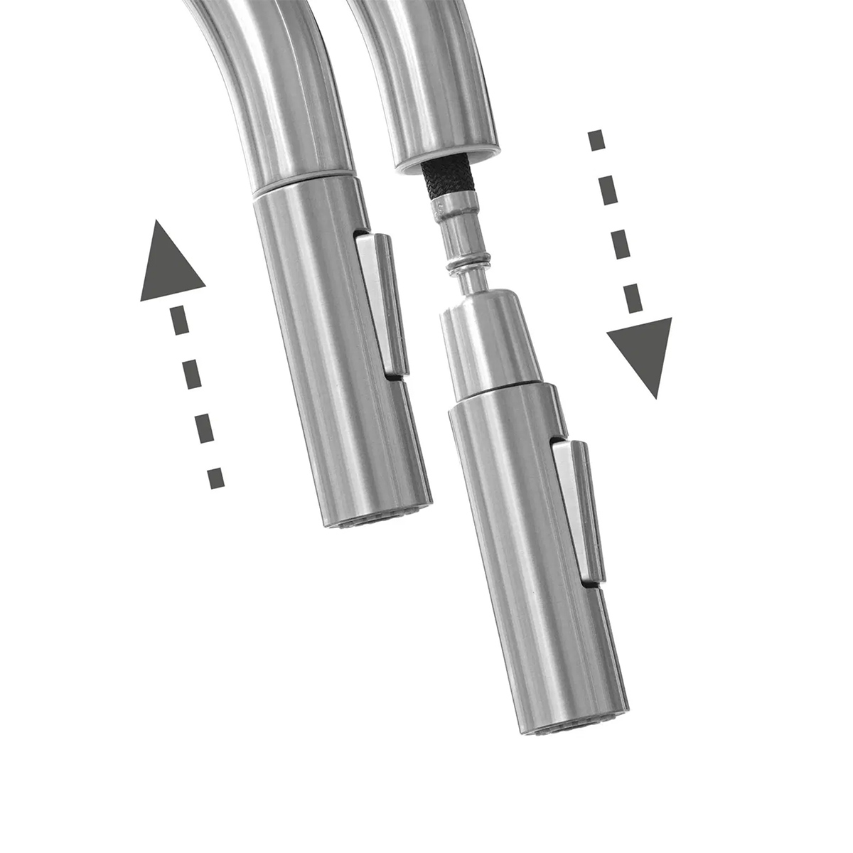 Spiralli Tasarım | Çekilebilir Uç | 1500 mm Hortum | Çift Fonksiyonlu Akış | Honeycomb Aeratör | AISI 304 Paslanmaz Çelik
