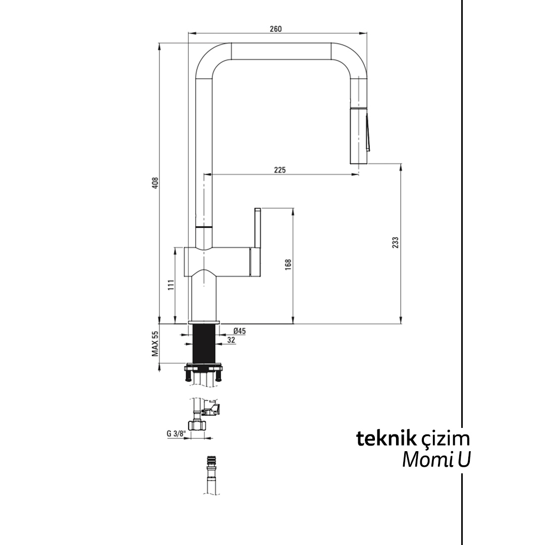 | Uç Tipi | Çekilebilir ve döner (spiralli hortumlu) |