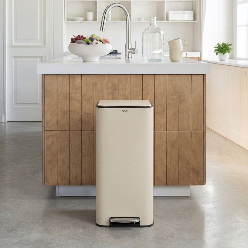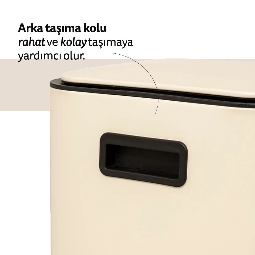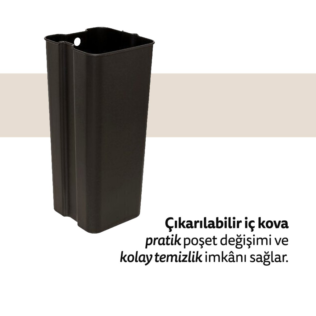 Delta 30 L kare pedallı çöp kovası, koku önleyici filtre sistemi sayesinde istenmeyen kokuların dışarı yayılmasını azaltır ve mutfakta daha temiz bir ortam sağlar. Yavaş kapanma (soft-close) mekanizması kapağın sessiz ve kontrollü şekilde kapanmasını sunarken, metal pedallı yapısı temassız ve hijyenik kullanım imkânı verir. Dayanıklı metal gövdesi ve çıkarılabilir iç kovası ile günlük kullanımda konfor ve uzun ömürlü performans sağlar.
