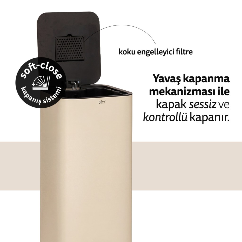 Koku Önleyici Filtre | Soft-Close Kapak | Metal Gövde | İç Kovalı | 2 Yıl Garanti