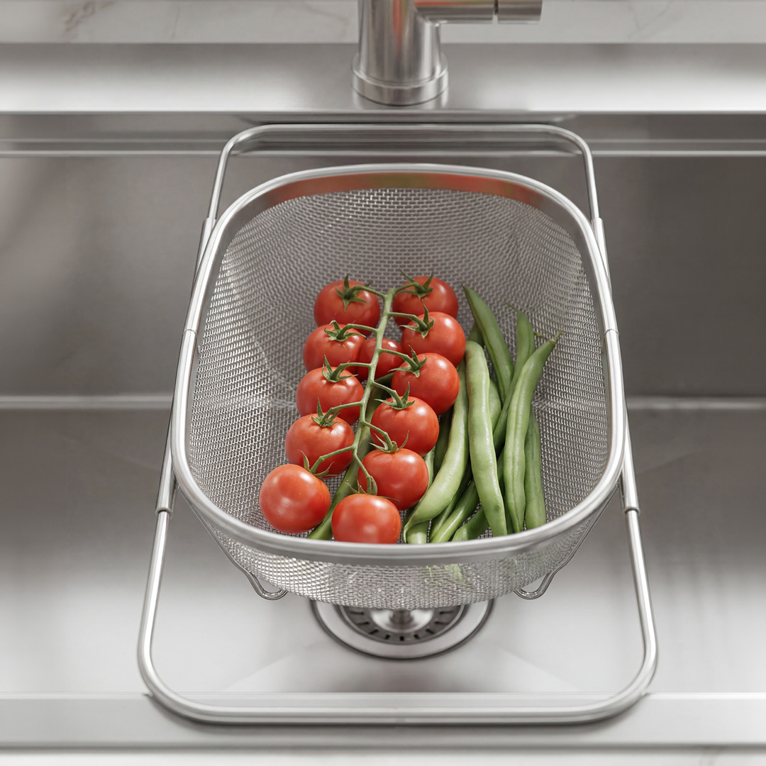 Sebze ve meyvelerin yıkanması, süzülmesi ve hazırlanması için ideal olan bu ürün, kompakt ölçüleri sayesinde evye içinde veya tezgâh üzerinde rahatlıkla kullanılabilir. Günlük mutfak akışını hızlandıran pratik bir yardımcıdır.