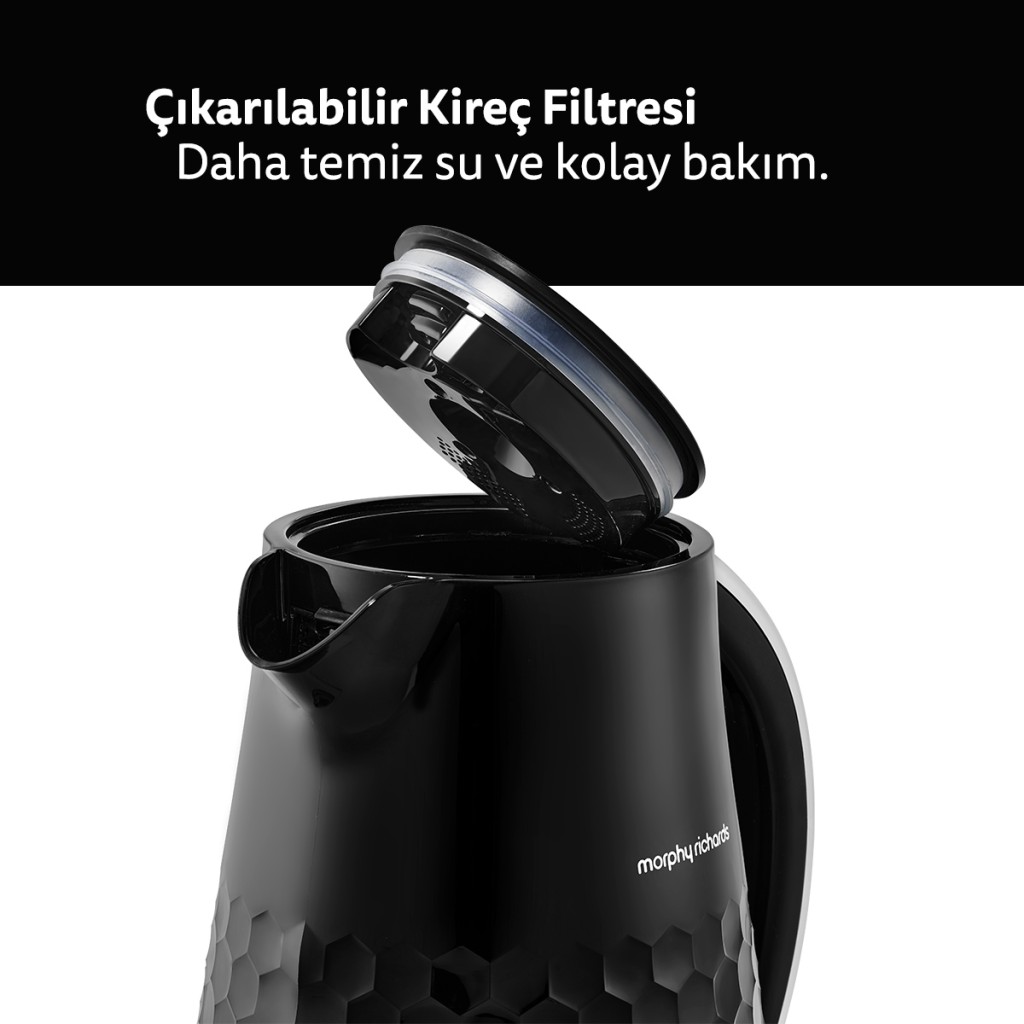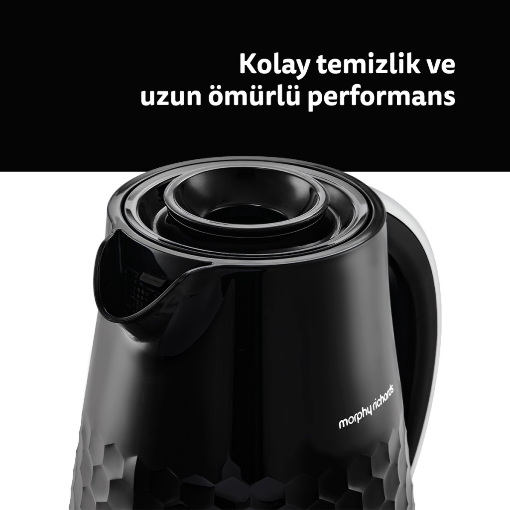 Morphy Richards Hive 1.5 L Elektrikli Su Isıtıcı, günlük sıcak su ihtiyacını hızlı ve pratik şekilde karşılamak için tasarlanmıştır. Modern Hive tasarımı, ergonomik detayları ve güçlü kaynatma performansı sayesinde mutfakta konforlu bir kullanım sunar.