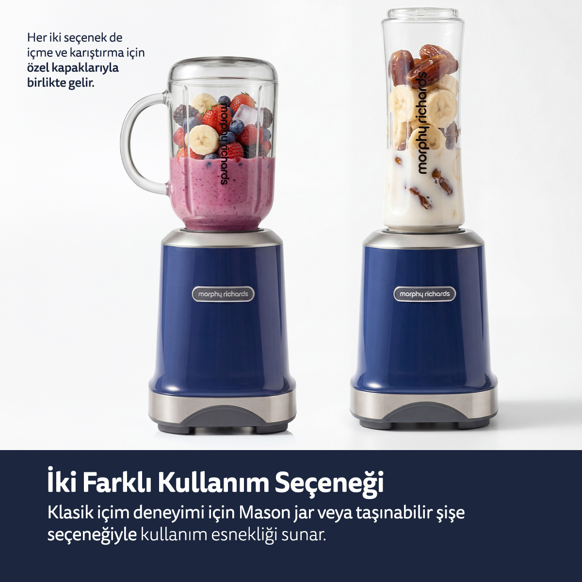 Morphy Richards Blender, modern mutfaklar için hız, pratiklik ve estetiği bir araya getirir. İngiliz tasarım çizgisiyle geliştirilen bu kompakt blender, güçlü motoru ve yüksek devirli bıçak sistemi sayesinde meyve, sebze ve farklı içerikleri saniyeler içinde homojen kıvama getirir.