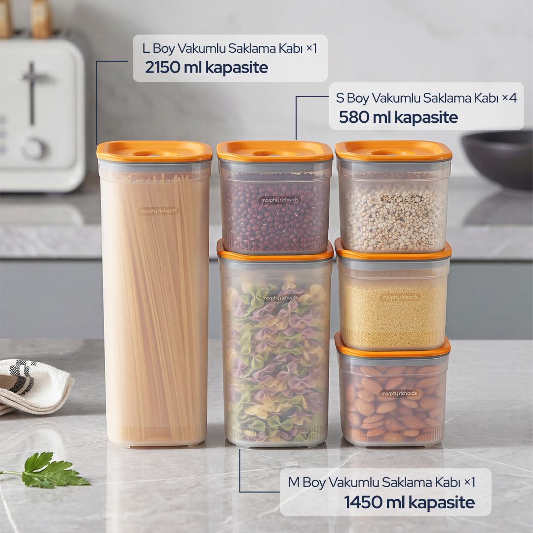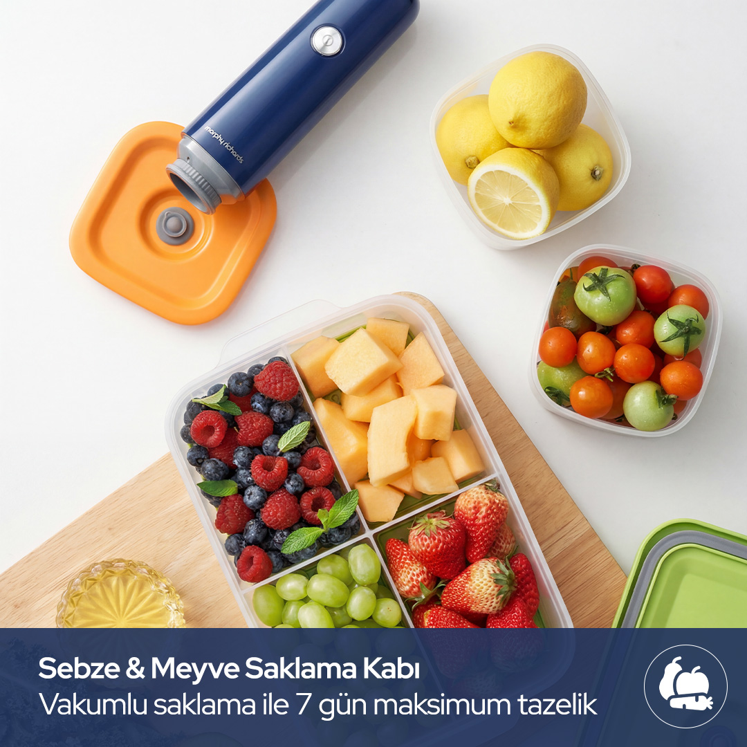 Morphy Richards Vakumlu Saklama Seti, klasik saklama kaplarının ötesine geçer. Bu sadece bir saklama çözümü değil, gıdaların tazeliğini koruyan akıllı bir sistemdir.