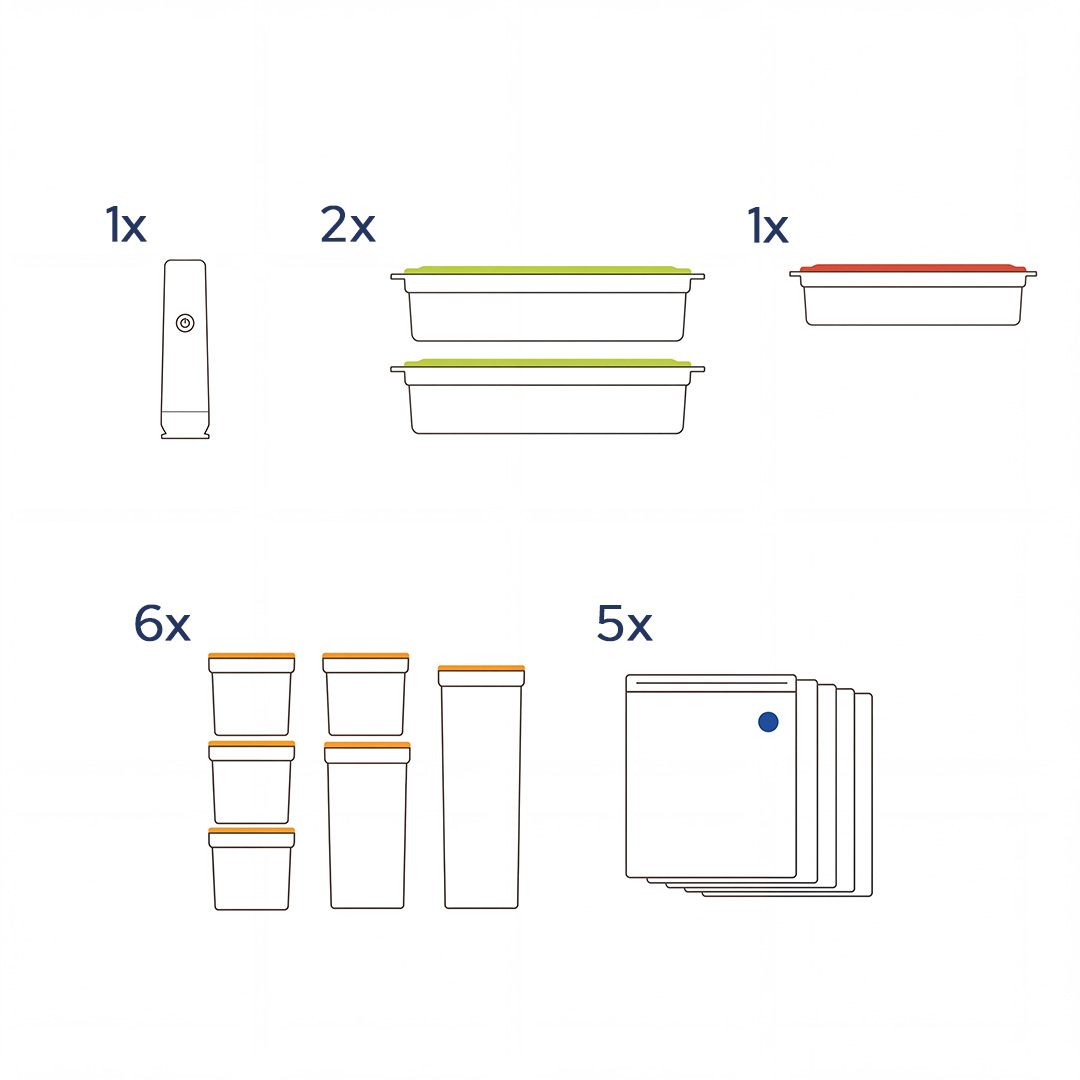 Kablosuz vakum pompası ile tek tuşta kullanım sunan sistem, günlük mutfak rutininizi hızlandırır. Kompakt yapısı sayesinde evde, ofiste veya seyahatte rahatlıkla kullanılabilir.