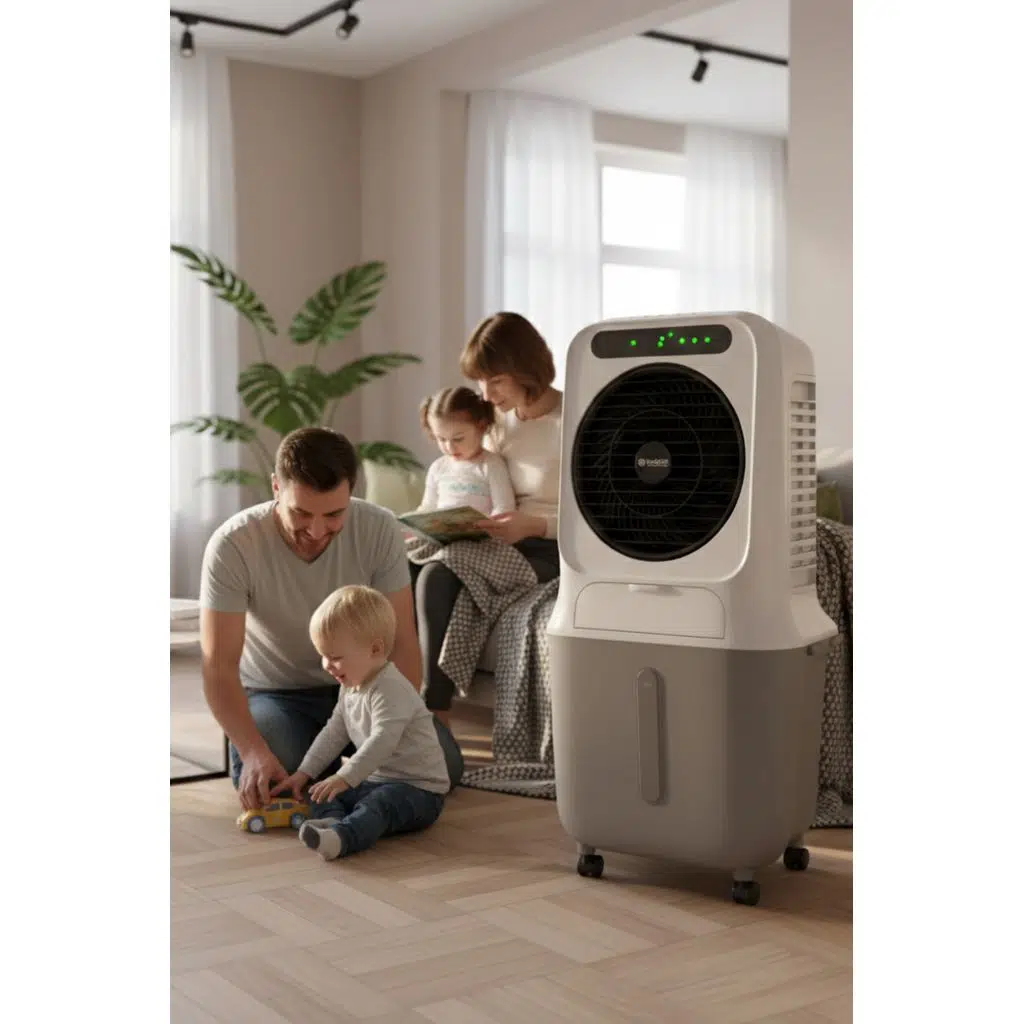 Peler 25 WiFi, güçlü hava debisi ve geniş su tankı kapasitesi ile öne çıkan bir evaporatif hava soğutucudur.; 1500 m³/h hava akışı ve 25 litrelik tankı sayesinde büyük alanlarda bile etkili serinlik sağlar.; 8.0 m/s rüzgar hızı, 3 farklı mod ve fan hız seçeneği ile kişiselleştirilmiş iklimlendirme sunar.; WiFi bağlantısı ve uzaktan kumandasıyla cihazı dilediğiniz yerden kontrol edebilirsiniz.; LED ekran, zamanlayıcı ve düşük su seviyesi uyarısı gibi özellikler kullanım kolaylığı sağlar.; Antidust filtre ve Plasma fonksiyonu ile daha temiz ve sağlıklı hava sunarken, katlanabilir yapısı sayesinde kolayca taşınabilir ve saklanabilir.; Peler 25 WiFi; işlevsellik, konfor ve estetiği bir arada sunan modern bir soğutma çözümüdür.; "Peler hava soğutucu, bir odayı veya alanı soğutmak için su ve havayı kullanan bir cihazdır.; Buharlaşma prensibiyle çalışır; bu, sıvı suyun buhara dönüşme sürecidir.; Su buharlaştığında, çevresindeki havadan ısıyı emer ve havanın sıcaklığını düşürür.; Klima performansı beklenmemelidir.; "