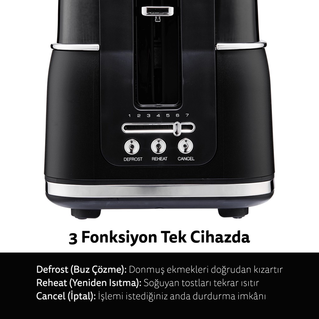 Ekmek Kızartma Makinesi | 2 Yuva – 4 Dilim Kapasite | Defrost / Reheat / Cancel