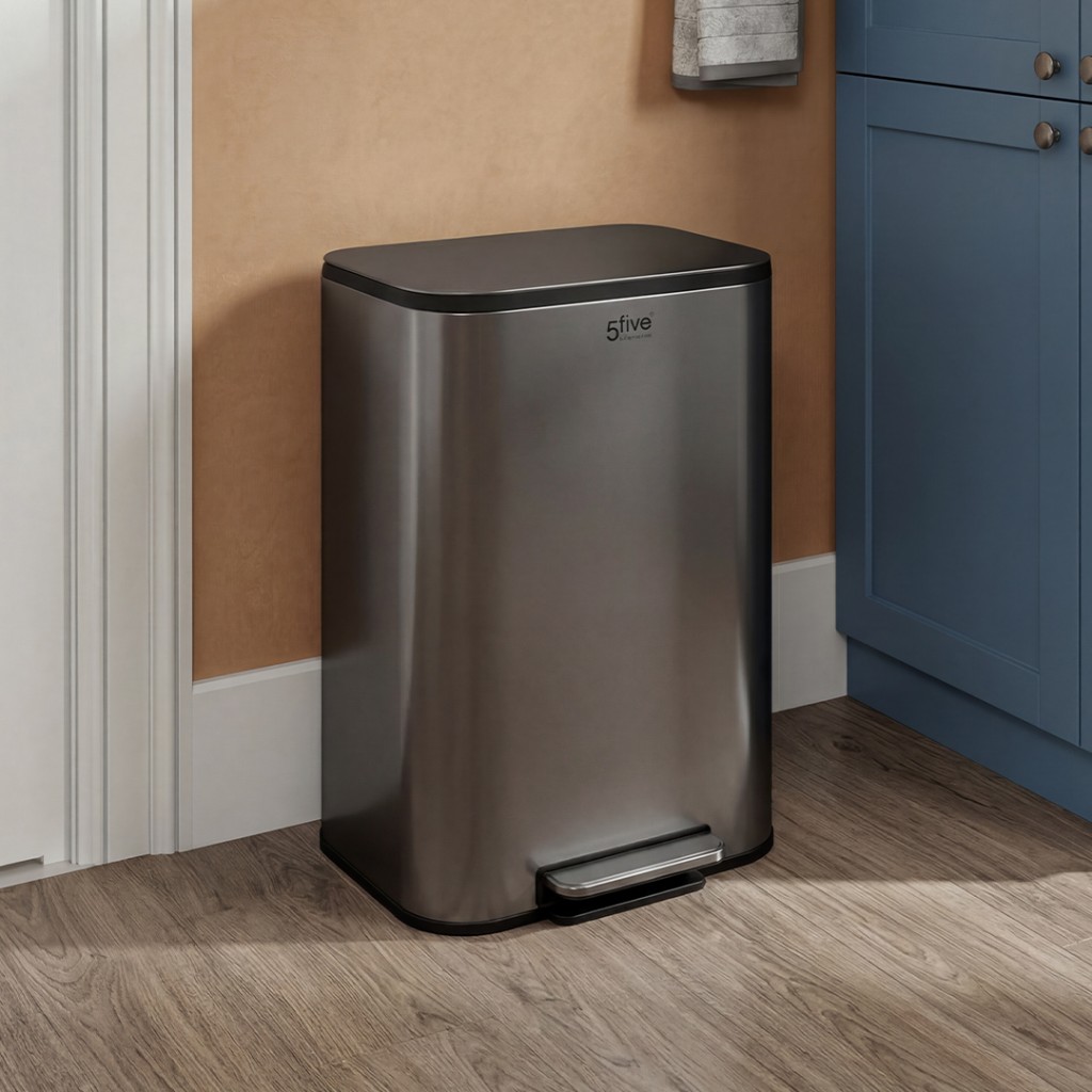 Parmak İzi Önleyici Kaplama | Soft Close (Yavaşlatıcı Fren) | 90° Açılış | Çıkarılabilir İç Kova | Arka Taşıma Kolu | Güçlendirilmiş Metal Pedal | 30 L