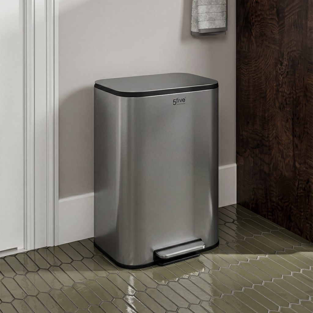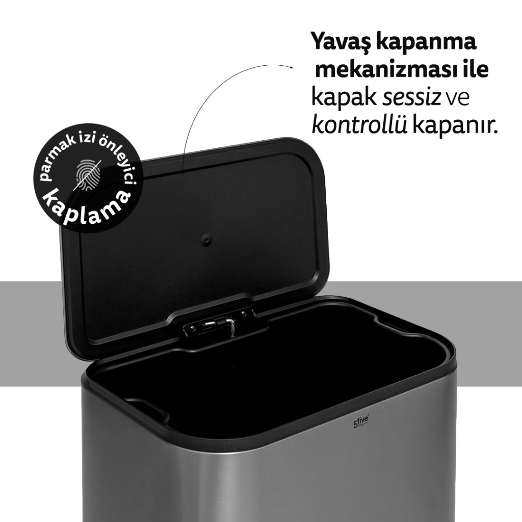 Paslanmaz Çelik Çöp Kovası | 50 L | Soft Close | Pedallı Açma | Çıkarılabilir İç Kova | 2 Yıl Garanti